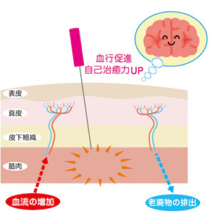 | 血行促進 | 鍼の刺激で血管が拡張し、血液の流れが良くなる |