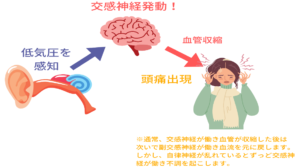 耳の中の内耳で気圧の変化を感知して自律神経に伝えてます。