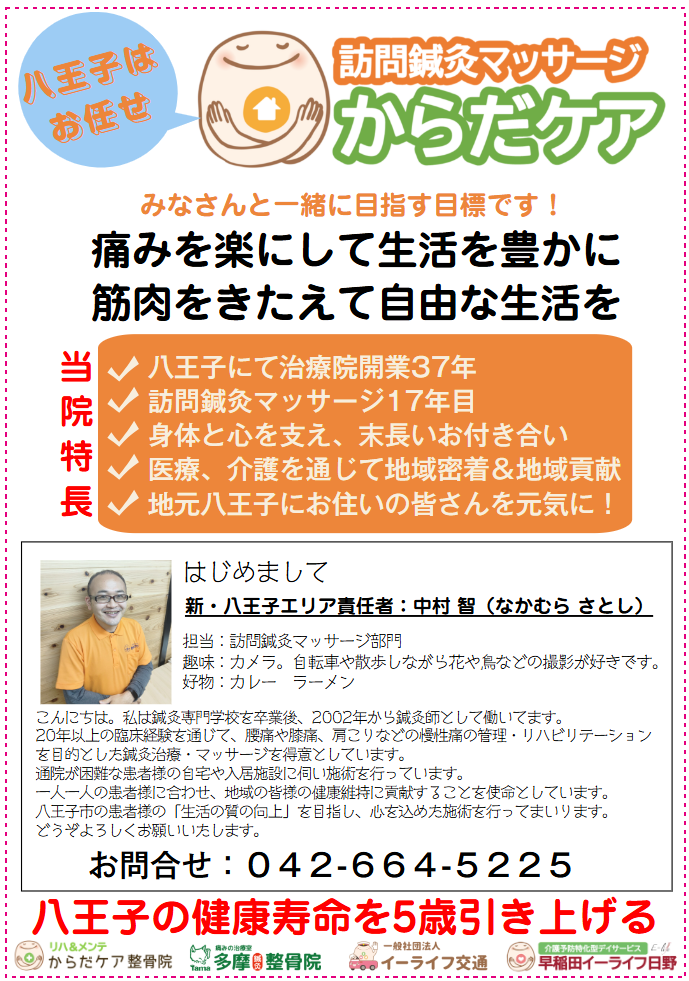 2月より本格始動!八王子に訪問鍼灸マッサージからだケアを開設します。